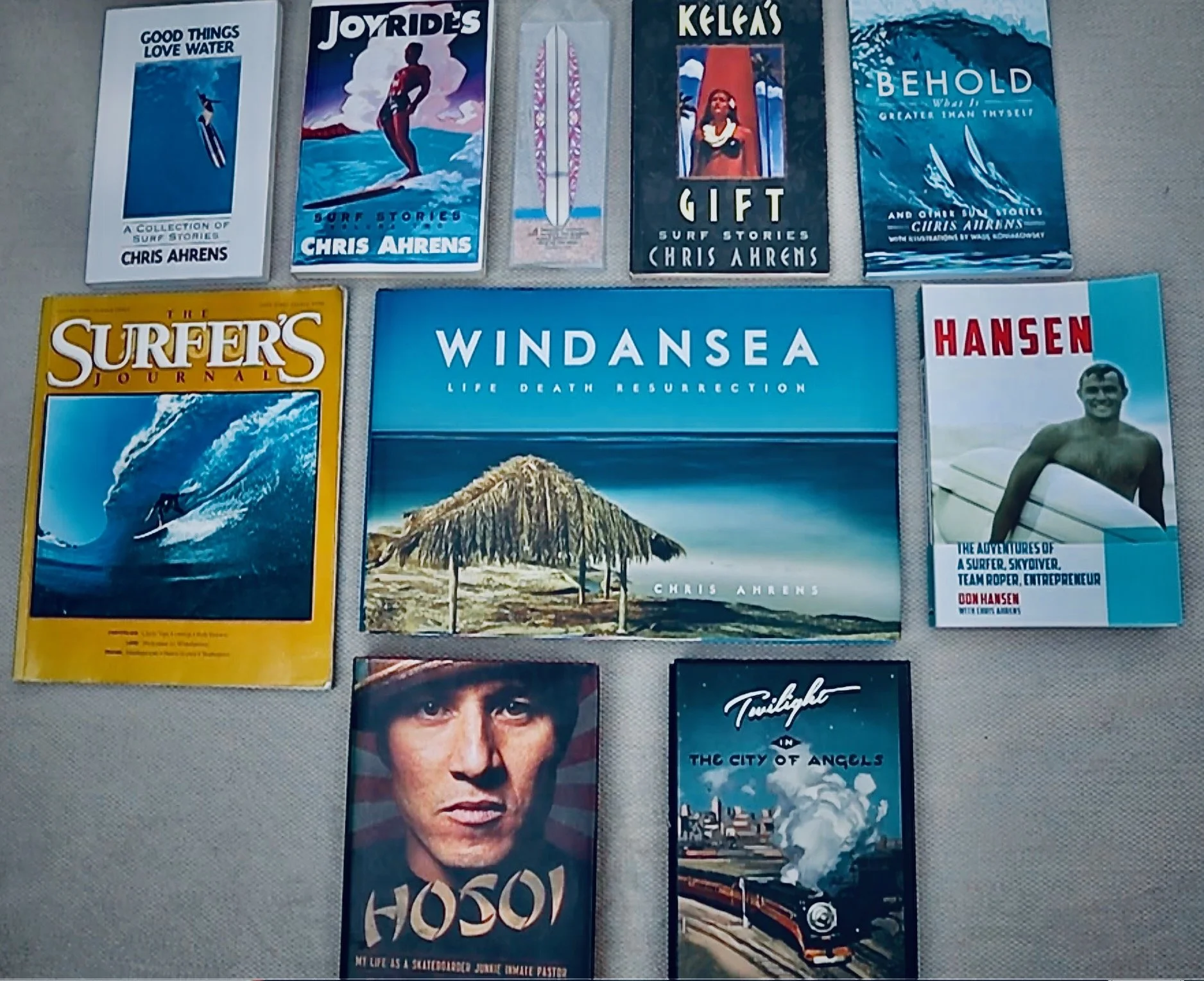 Chris Ahrens began surfing in 1962. It would be another decade before he had his first story published in Surfer Magazine. Since then, Ahrens has contributed to every major surfing publication in the world. His short surf story collections: Good Things Love Water, Joyrides, Kelea’s Gift, and Behold What Is Greater Than Thyself are considered surf classics. He continues surfing on a regular basis and lives in Oceanside, CA with his wife, Tracy, three Skip Frye Surfboards, and two cats.